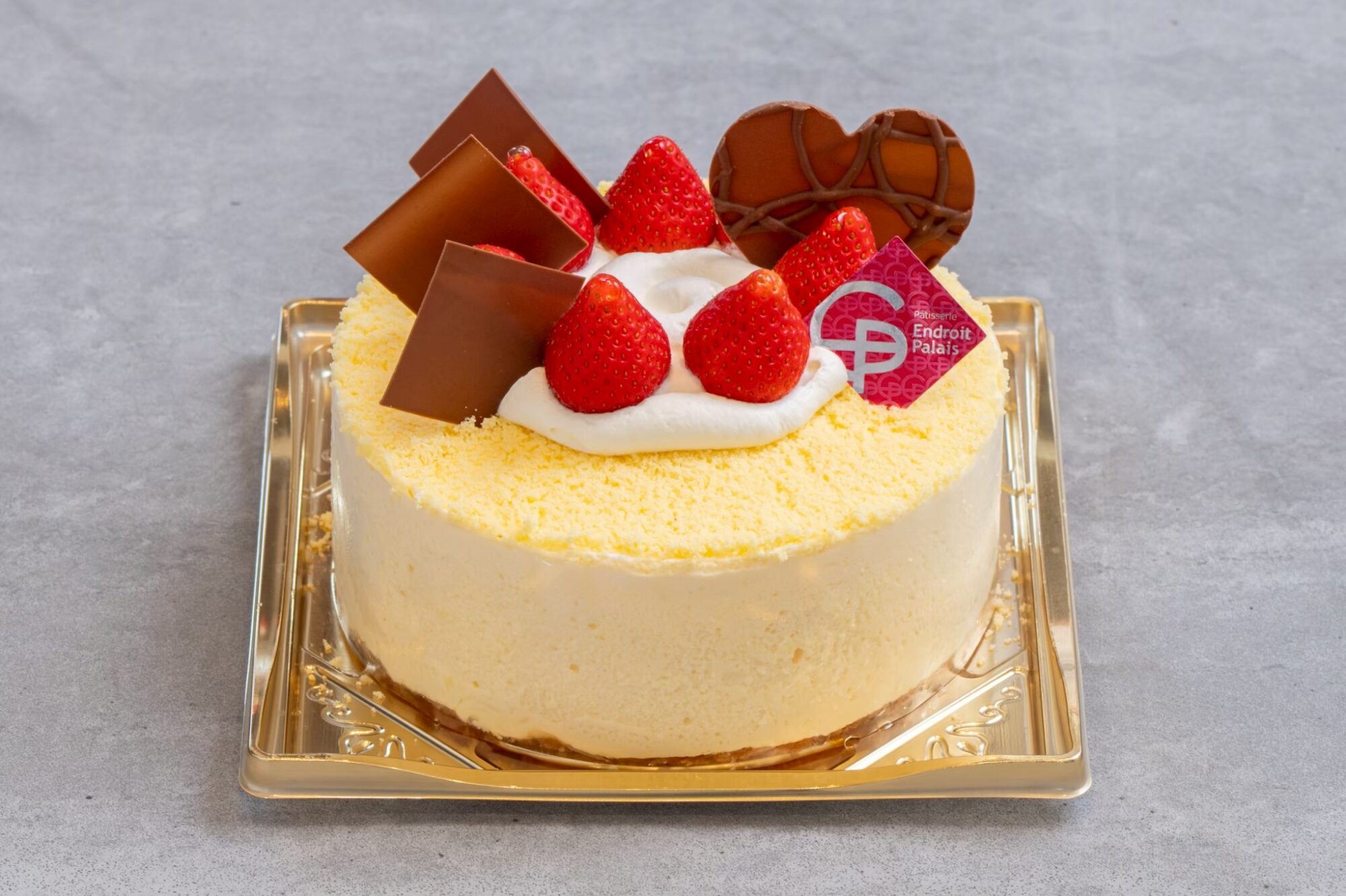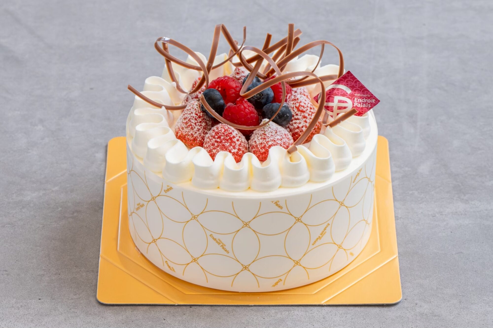 ビスキュイキュイエールにホワイトチョコ入り濃厚バニラクリーム、口どけの良いスポンジ、旬のフルーツを合わせました。