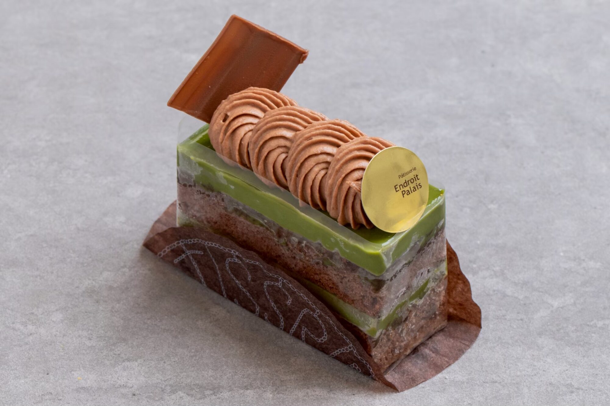 カカオ収穫後60日以内に仕立てたカカオのフレッシュなアロマを感じるショコラを使用したショコラクリームに、ピスタチオの濃厚