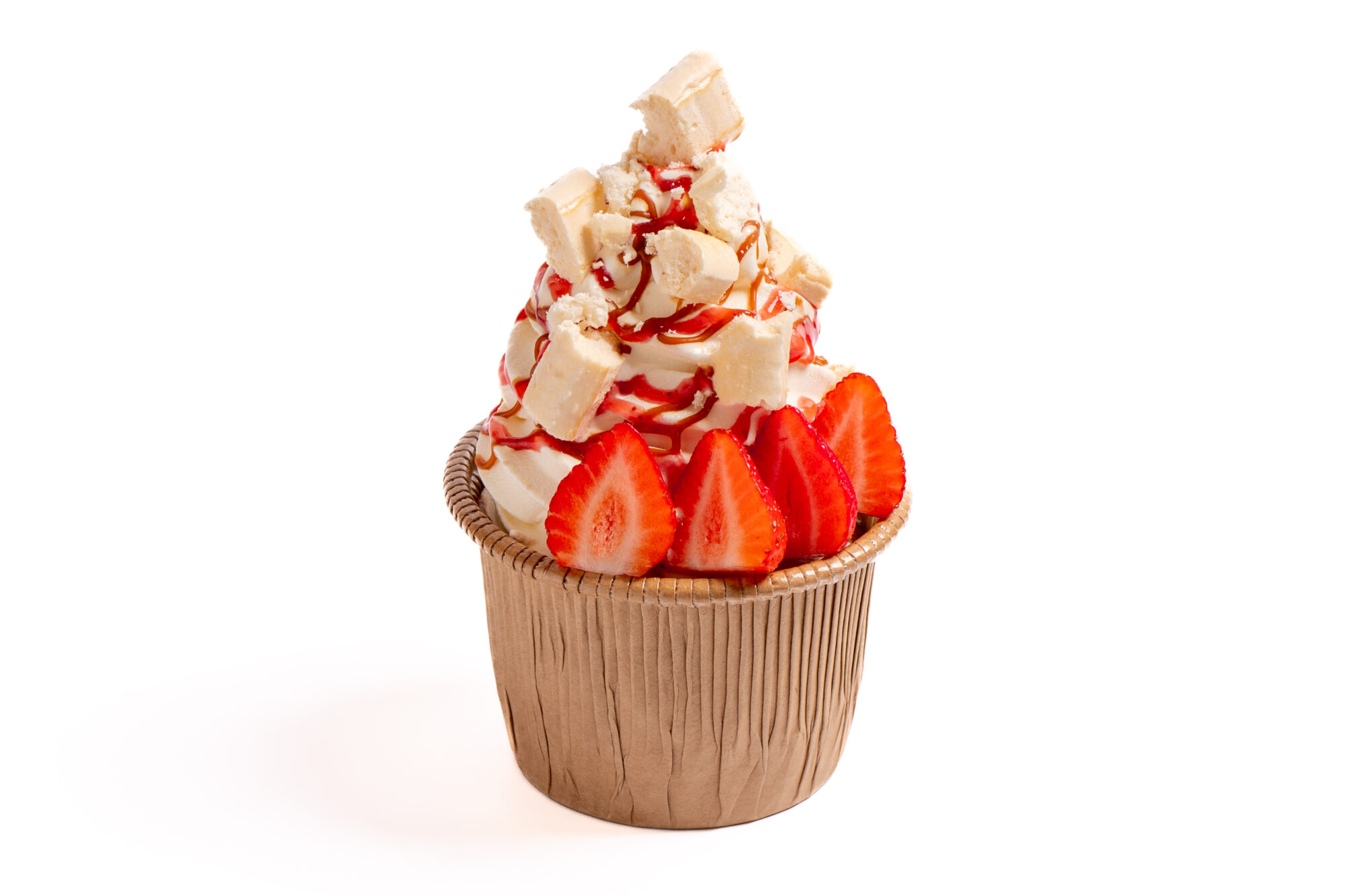 北海道生クリームに口どけの良いスポンジ、苺、苺ソースを合わせました。