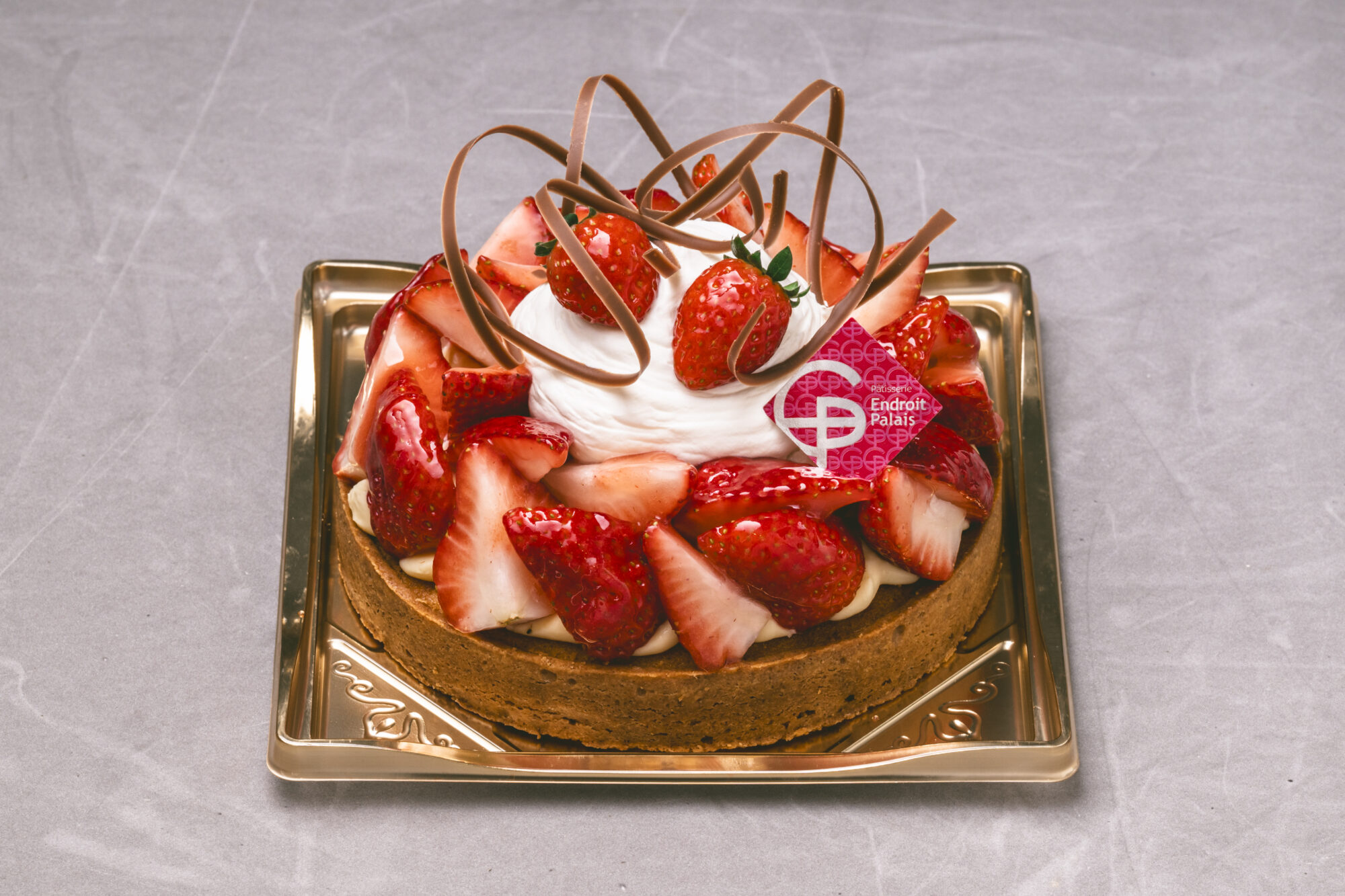 北海道生クリームに口どけの良いスポンジ、苺、苺ソースをサンドして、プティシューとベリー系でデコレーションしました。