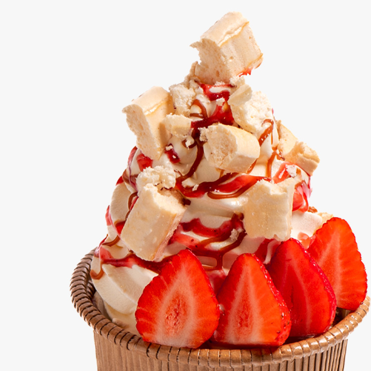 北海道生クリームに口どけの良いスポンジ、苺、苺ソースを合わせました。