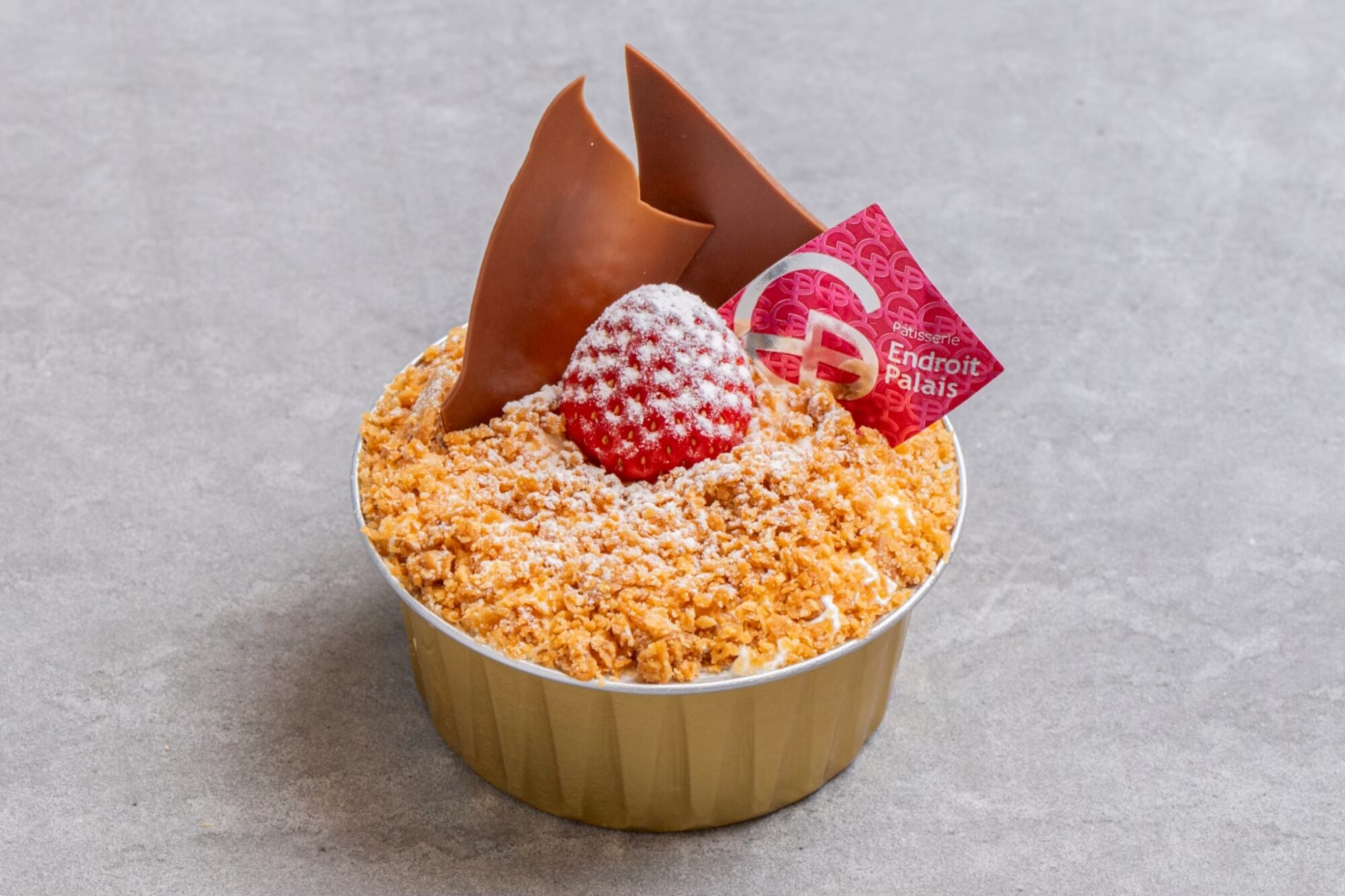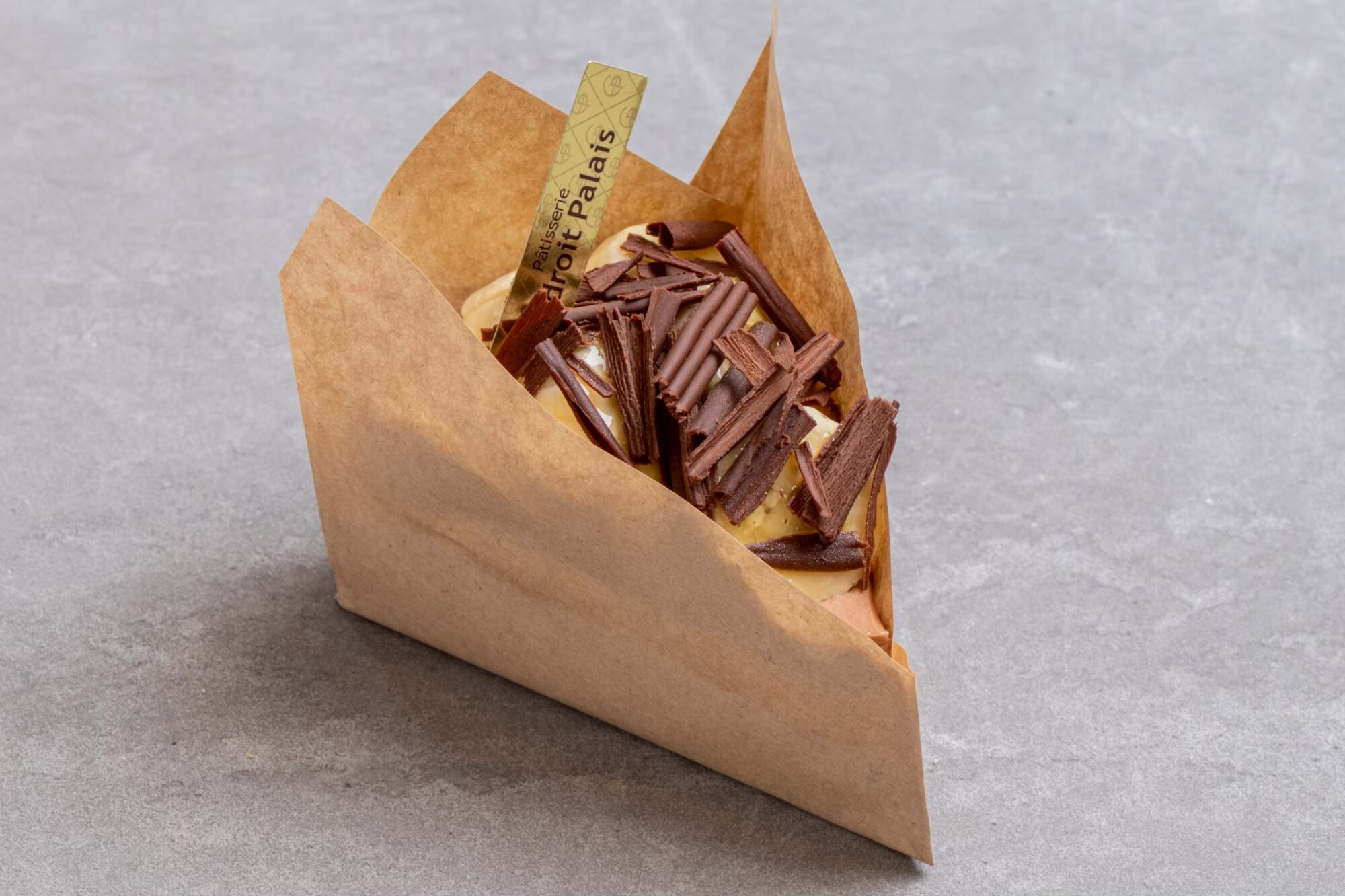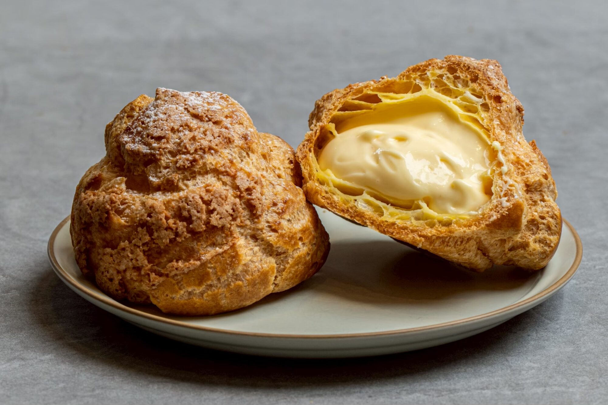 発酵バターを使用したシュー生地にマカロン生地をプラスして焼いたサクサク、カリカリのシュー皮に特製のカスタードクリームを詰